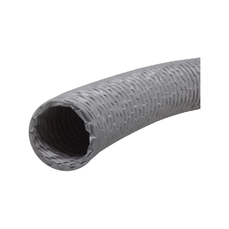 Išsamus aprašymasLengva ir labai lanksti spiralinė žarna, pagaminta iš PVC dengto poliesterio audinio. Panaudojimas: oro kondicionavimas, ištraukimo svirtys, oro, dujų ir suvirinimo dūmų siurbimas, aušinimo technologijos, vėdinimas. Konstrukcija: pilkas PVC dengtas poliesterio audinys su variu padengta plienine spyruokline plienine viela. Suspausta ir tinklinė versija, kurios vidinis skersmuo nuo 100 mm iki 250 mm (10 m žarnos ilgis suspaustas per 1,66 m). Temperatūra: nuo -30 °C iki 80 °C, trumpalaikė iki 100 °C. Savybės: atsparus ugniai, hidrolizei ir mikrobams, puikus lankstumas su mažu lenkimo spinduliu, geras atsparumas temperatūrai, puikus ašinis suspaudžiamumas.