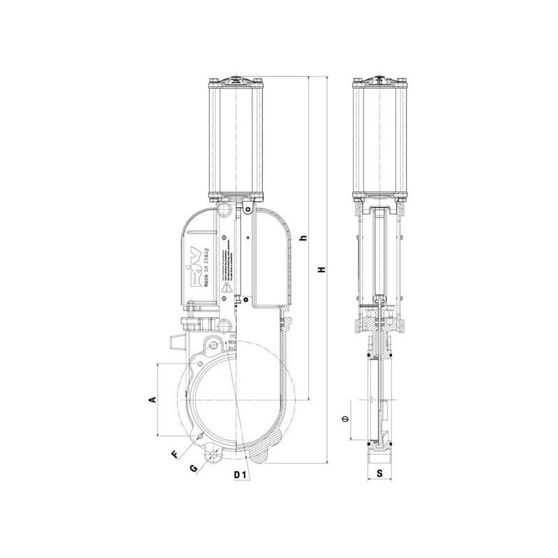Peilinė sklendė 6" GLADIO pneumatinė RIV123150