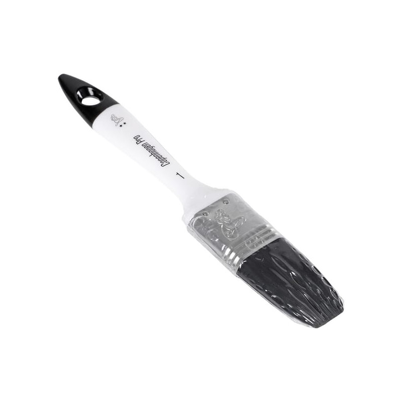 Išsamus aprašymasPlokščias teptukas, pagamintas iš sintetinių pluoštų, su nikelio antgaliu be spiralės ir pilna plastikine rankena. Šis teptukas tinka visų tipų dažams.