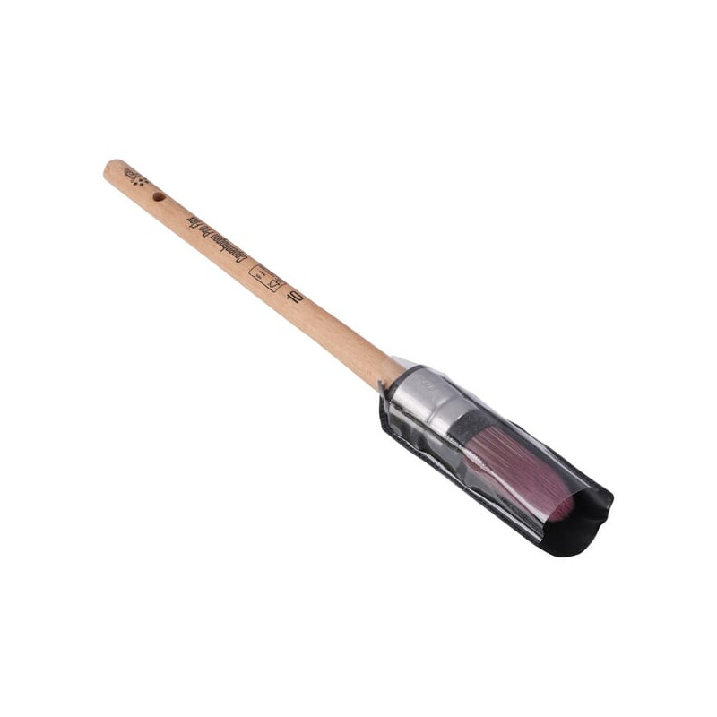 Išsamus aprašymasSmailus lakuotas teptukas su šereliais, pagamintais iš modifikuotų ir labai lanksčių poliesterio pluoštų mišinio. Jis turi nerūdijančio plieno antgalį, medvilninį spyruoklę ir vaškuotą rankeną. Teptuko šereliai yra ypač minkšti ir sudaro dirbtinį žvilgesį. Teptuko galiukas yra sferiškai suformuotas, todėl puikiai tinka tiksliam darbui su mažesniais paviršiais, tokiais kaip langų rėmai ir kraštai. Šis teptukas tinka naujo tipo dažams, pavyzdžiui, vandens pagrindo dažams ir dažams su mažu lakiųjų organinių junginių kiekiu. Rodyti daugiau
