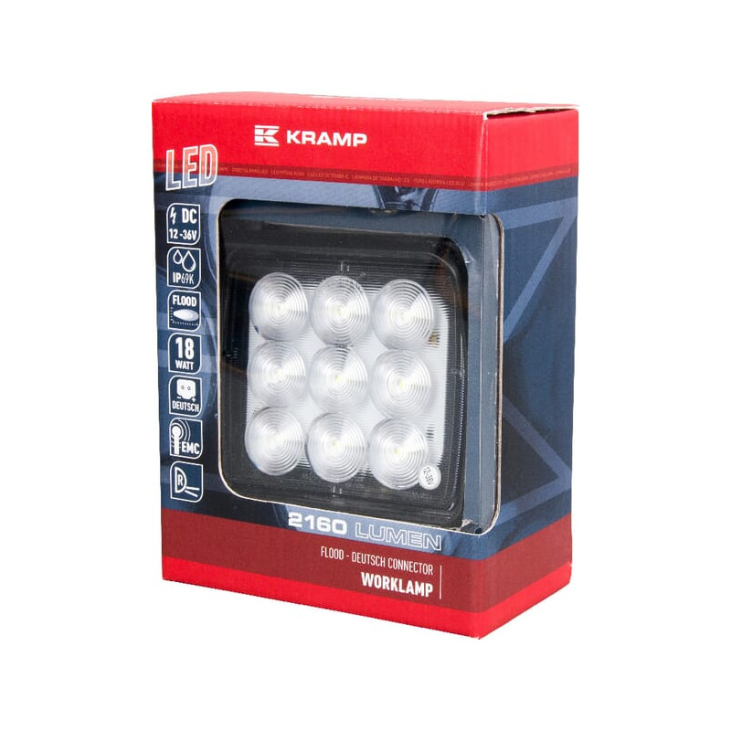 Darbo žibintas LED, 18W, 2160lm, kvadratinis, 12/36V, 142x58,1x122mm „Deutsch“ kištukas, prožektorius, Kramp LA10093