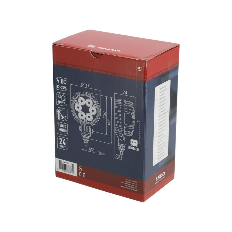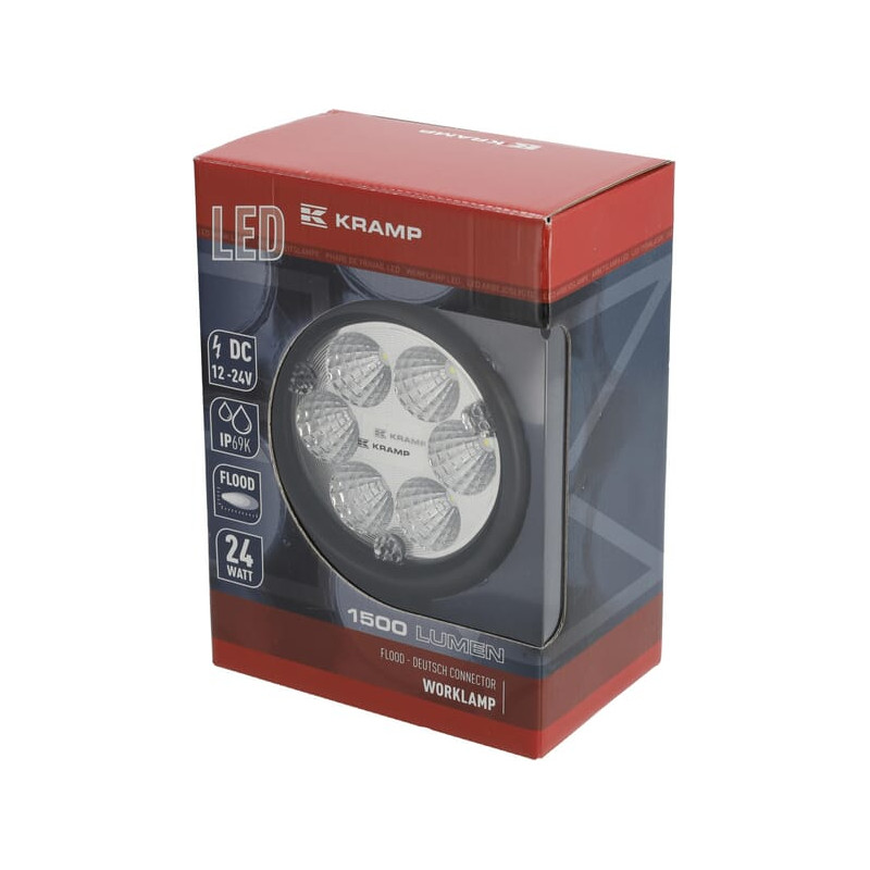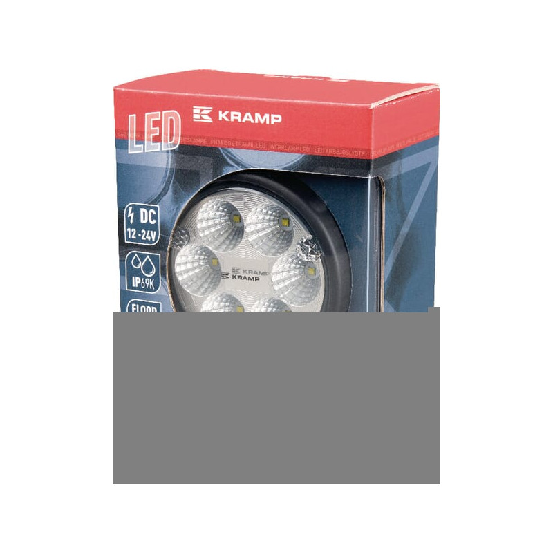 Darbo žibintas LED, 24 W, 1500 lm, apvalus, 10/30 V, Ø 117 mm „Deutsch“ kištukas, prožektorius, 6 LED, Kramp LA10007