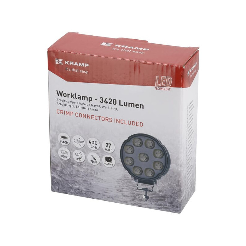 Darbo žibintas LED, 27 W, 3420 lm, apvalus, baltas, 100 x 48,5 x 120 mm, „Deutsch“ 2 kontaktų, prožektorius, „Kramp“ (10 vnt. dė