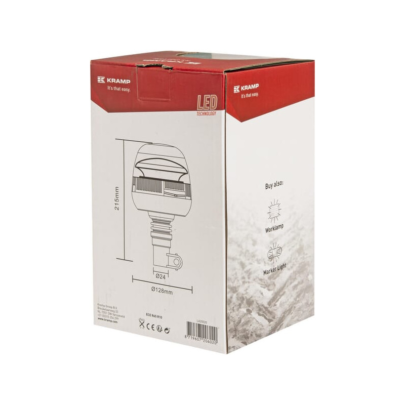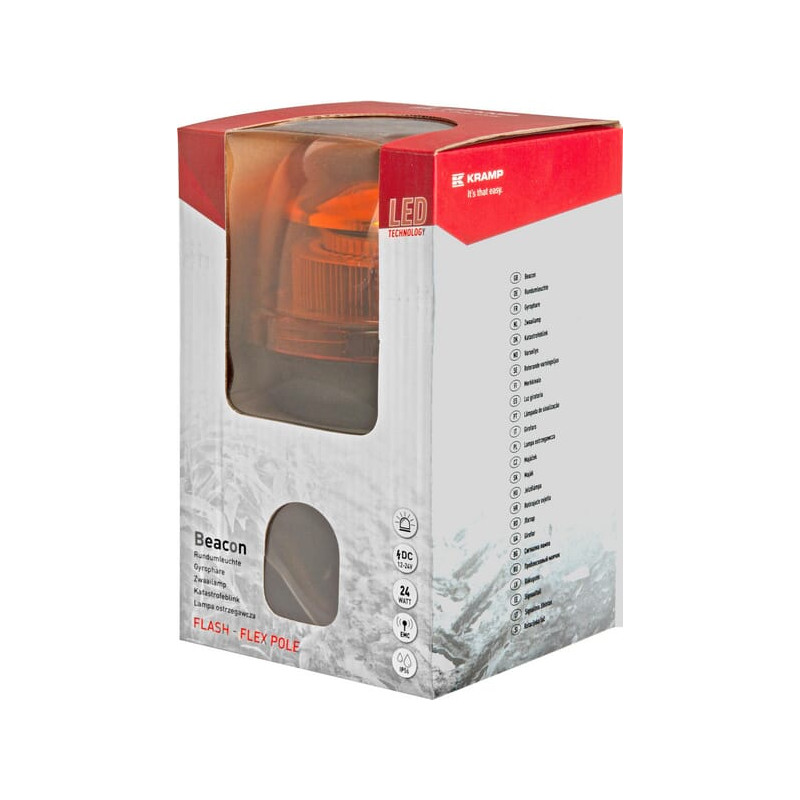 Įspėjamasis švyturėlis LED, 24 W, 12–24 V, geltonas, lankstus tvirtinimas prie stulpo, Ø 128 mm x 215 mm, Kramp LA20020