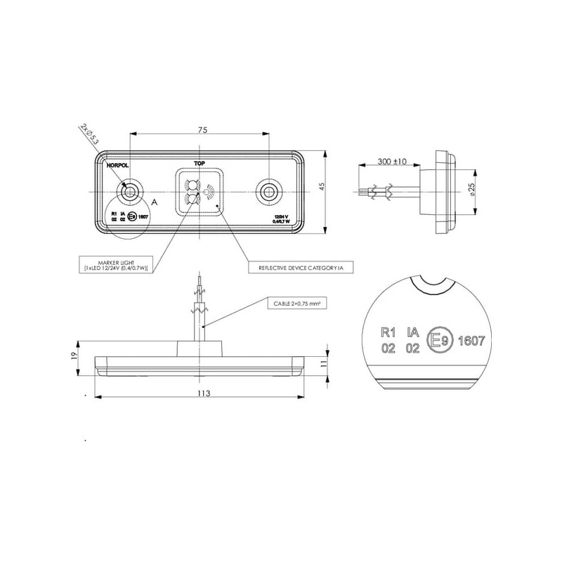 LED gabaritinis žibintas, 0,4/0,7 W, stačiakampis, 12/24 V, raudonas, 112 x 45 x 11 mm, 3 LED, gopart LA35055