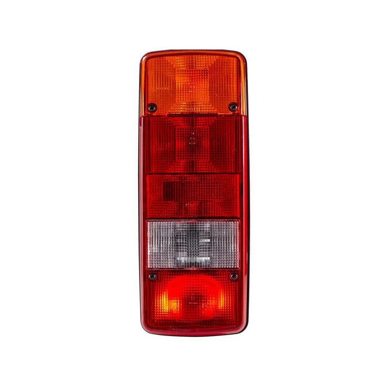 Galinis žibintas dešinysis, stačiakampis, 12/24V, raudonas/gintaras/baltas, tvirtinamas varžtais, 343x75x133 mm, Hella 2SK003567