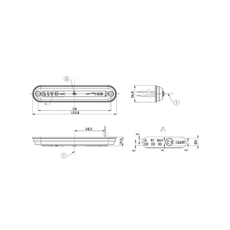 LED gabaritinis žibintas, 0,7/1,5 W, stačiakampis, 12–24 V, raudonas, 133,8 x 26,8 x 14,4 mm, 6 LED, Kramp LA103162