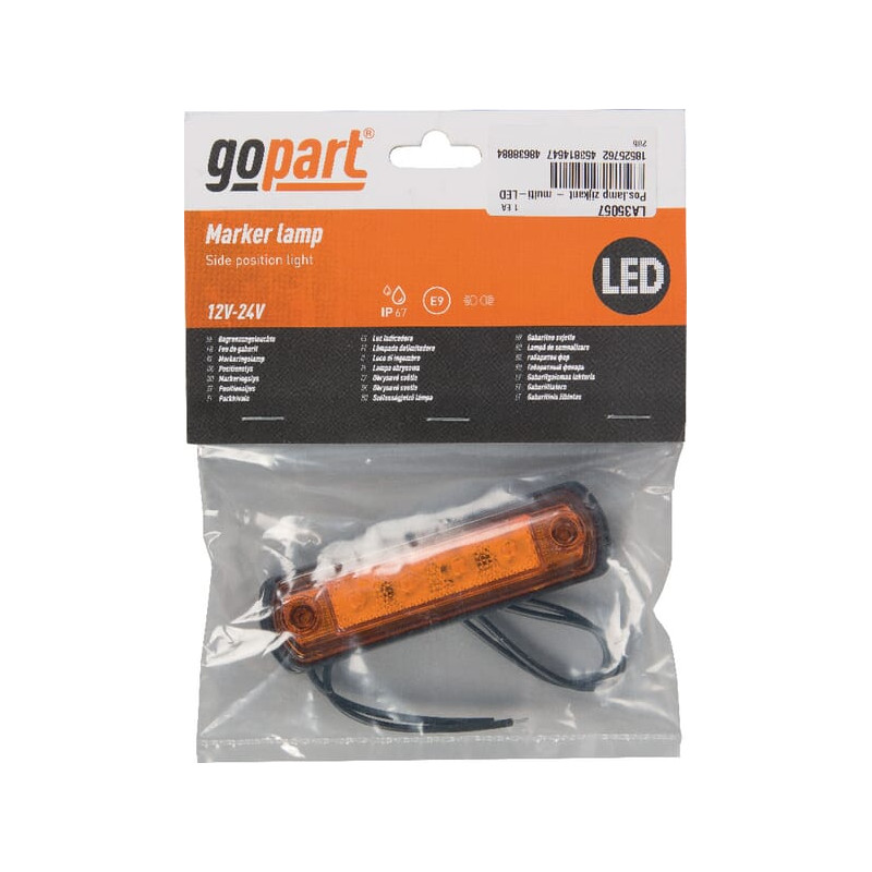 LED gabaritinis žibintas, 0,5/1 W, stačiakampis, 12/24 V, oranžinis, 110 x 31 x 15 mm, 4 LED, gopart LA35057