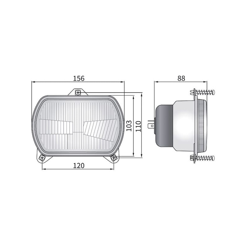 Halogeninis priekinis žibintas, ovalus, 12/24V, 156x103mm, Kramp LA80165