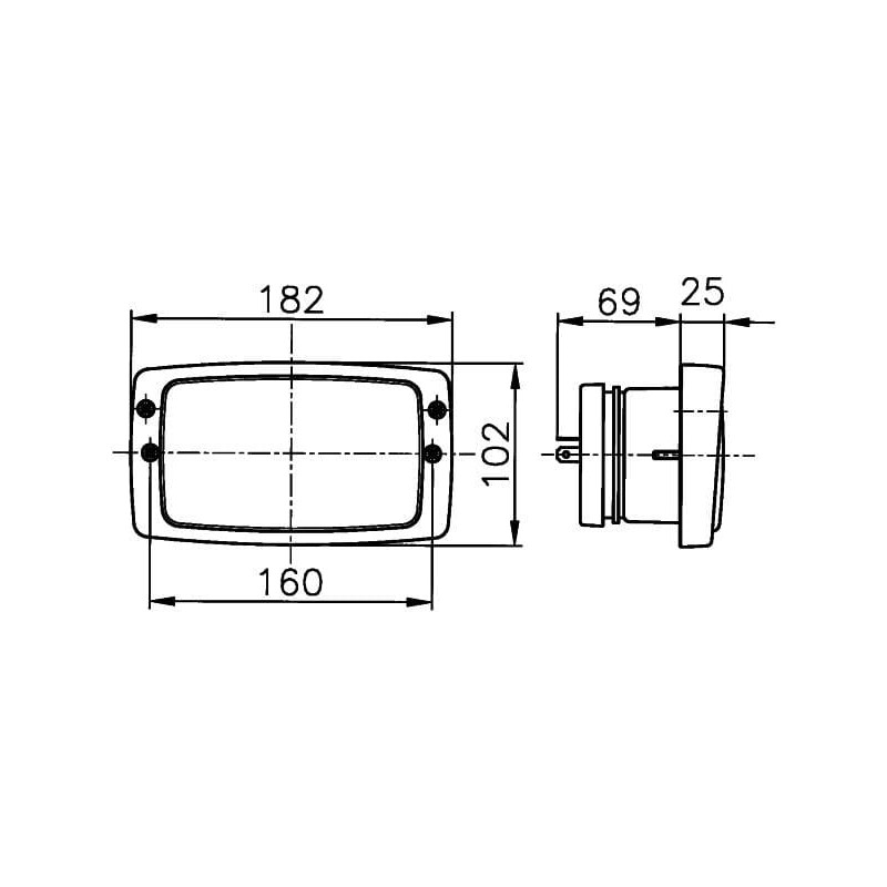Halogeninis priekinis žibintas, stačiakampis, 12/24V, skaidrus, tvirtinamas varžtais, 182x94x102mm, Hella 1AB006213027
