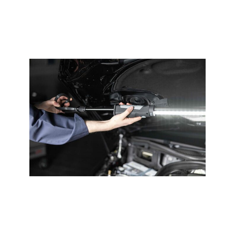 Papildoma informacija1000 liumenųIštraukiamas tvirtinimas su 360° pasukamais kabliukais ir magnetais (120–200 cm)Idealiai tinka saugiam darbui variklio skyriujeGalima sulankstyti 90°Maitinimas per mikro USB laidą, 600 mm ilgio, 5 V 2 A