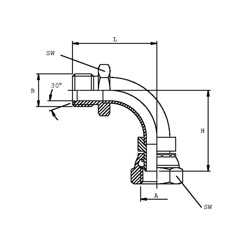 Alkūnė su nuleista galvute, išorinė/vidinė M18x1,5 MF90M18B
