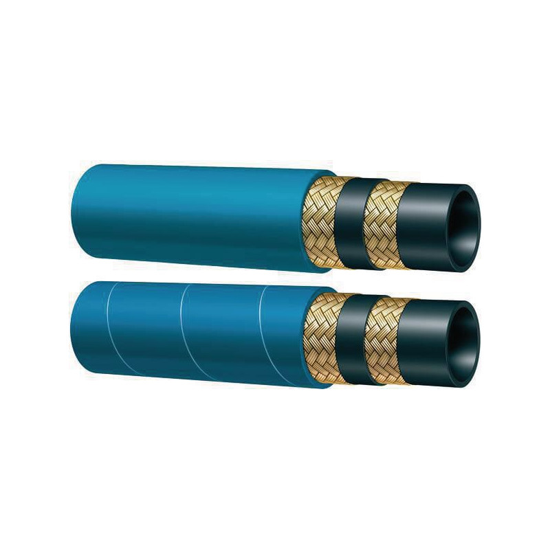Produkto informacijaHidraulinė žarna su guma su 2 pintais plieniniais įdėklais, pasižyminčiais dideliu tempiamuoju stiprumu Aukštai temperatūrai atspari žarna Prieš presavimą nulupkite žarną Mėlyna lygi išorinė danga iki 5/8 colio Mėlynas apvyniotas tekstilės atspaudas nuo 3/4 colio Hidraulinės sistemos, veikiančios temperatūros diapazone: -40 °C +150 °C Oro sistemos: maks. 85 °C iki 5/8", nuo 3/4" iki 110 °C. Nerekomenduojama garams. Galimi įvairūs ilgiai: SAE 100R2AT EN 853 2SN ISO 1436-1. Visada žr. naujausias preso matmenų lenteles, atsisiuntimus rasite kiekvieno tinklalapio apačioje.