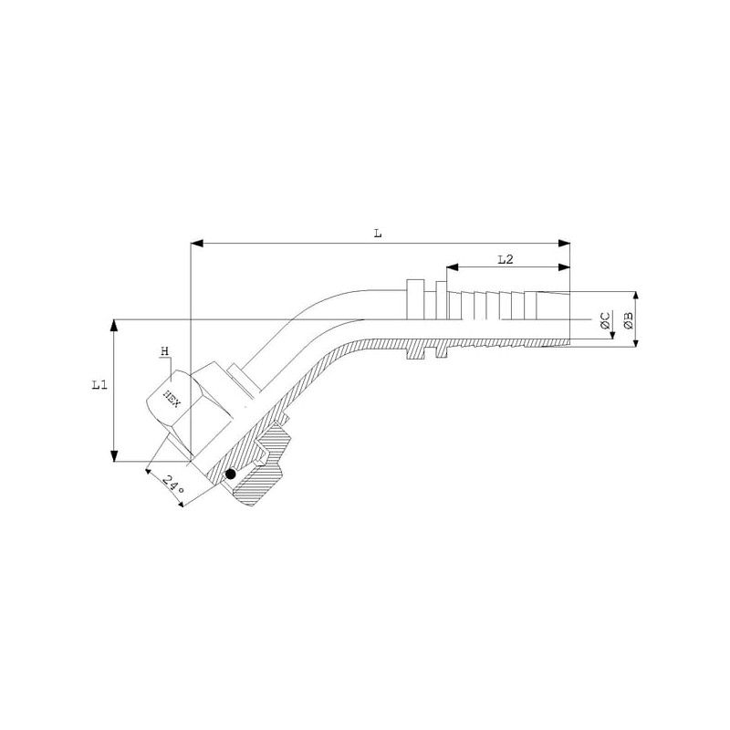 Įdėklas DN13-M22x1.5-15L-45° nerūdijančio plieno PGLO132245RVS