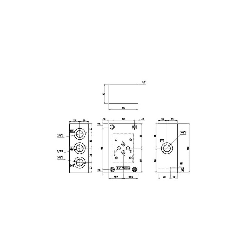 Pagrindo plokštės šoninis prievadas A-P / B, T ES3D38L3