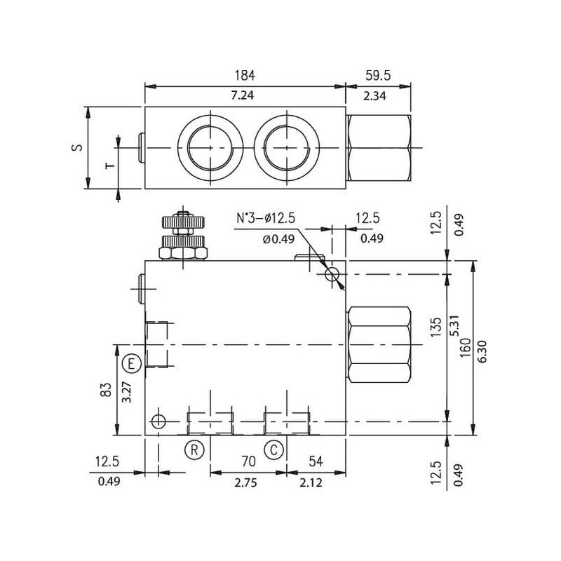Techninė informacijaŠie vožtuvai turi reguliavimo žiedą su fiksavimo veržle, kuris yra standartinis, R prievadas gali būti apkrautas esant slėgiui.