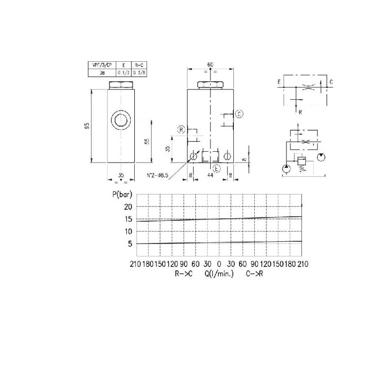 Valdymo vožtuvas 1,5 mm/ 3 l/min VPF3EP05001