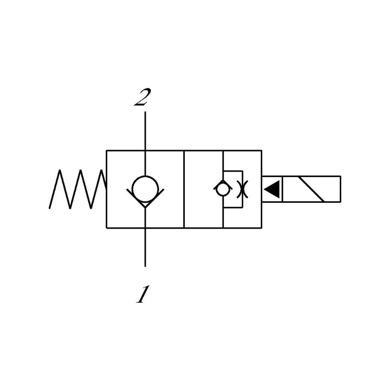 Išsamus aprašymasTai normaliai uždarytas, iš anksto valdomas solenoidinis vožtuvas. Išjungtoje būsenoje srautas iš 2 į 1 yra uždarytas, o iš 1 į 2 teka laisvai. Kai vožtuvas įjungtas, srautas iš 2 į 1 teka laisvai, o iš 1 į 2 prievadą yra griežtas apribojimas.
