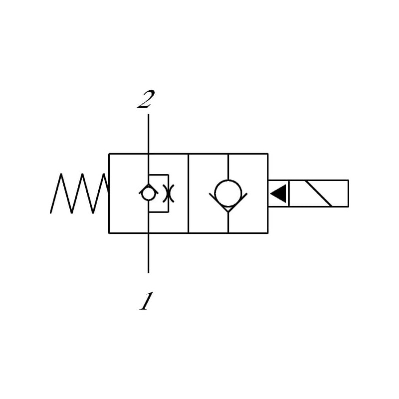 Išsamus aprašymasTai normaliai atidarytas, iš anksto valdomas solenoidinis vožtuvas. Išjungtoje būsenoje laisvas srautas iš 2 į 1 angą ir stiprus apribojimas iš 1 į 2 angą. Kai valdomas, 2 į 1 yra uždarytas ir laisvas srautas iš 1 į 2 yra. Šis tipas standartiškai tiekiamas su rankiniu valdymu kaiščiu.