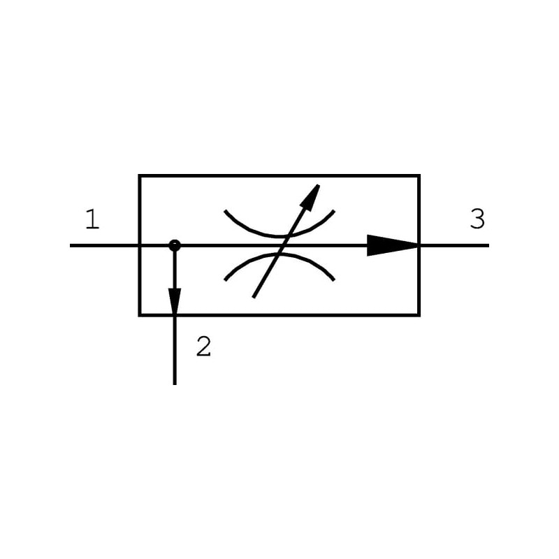 Išsamus aprašymasŠis reguliuojamas, 3 padėčių, slėgio kompensuojamas srauto reguliavimo vožtuvas (lygiagretus vožtuvas) turi srauto kryptį nuo 1 iki 3 ir 2. (1) tiekiamas tūrinis srautas reguliuojamas nepriklausomai nuo apkrovos iki (3). Likusi alyva siunčiama per (2) apeinamąjį kanalą į galimą antrąją grandinę. Šie vožtuvai standartiškai komplektuojami su rankiniu ratu ir skale.