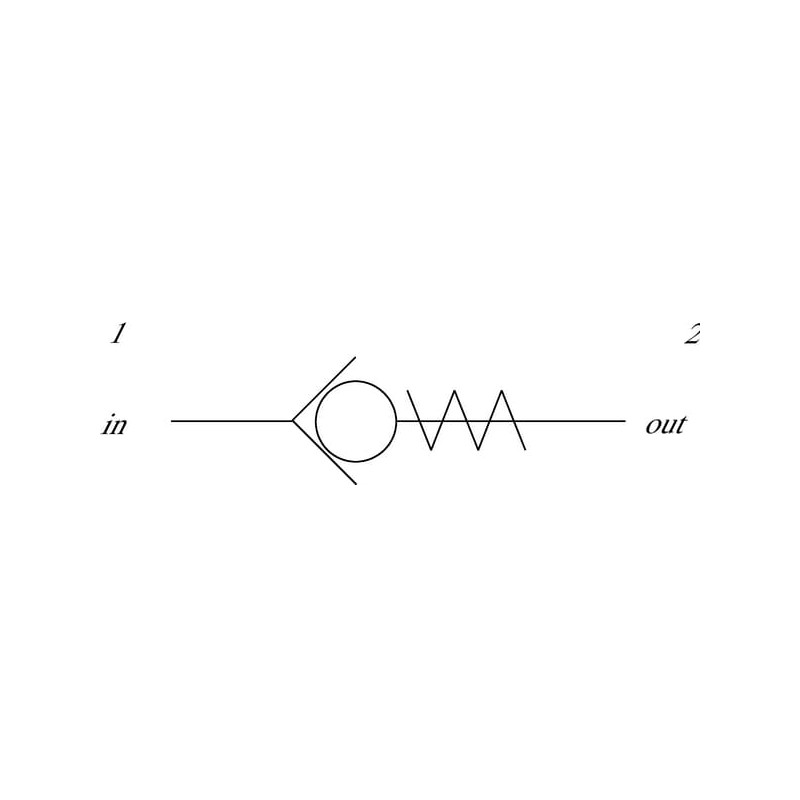 Išsamus aprašymasŠis spyruoklinis atbulinis vožtuvas turi laisvą srautą nuo 1 iki 2 ir blokuoja nuo 2 iki 1. Standartinis atidarymo slėgis yra 0,34 baro. Pasirinktinai galima įsigyti su 1,03 ir 4,48 baro išankstinio įtempimo slėgiais.