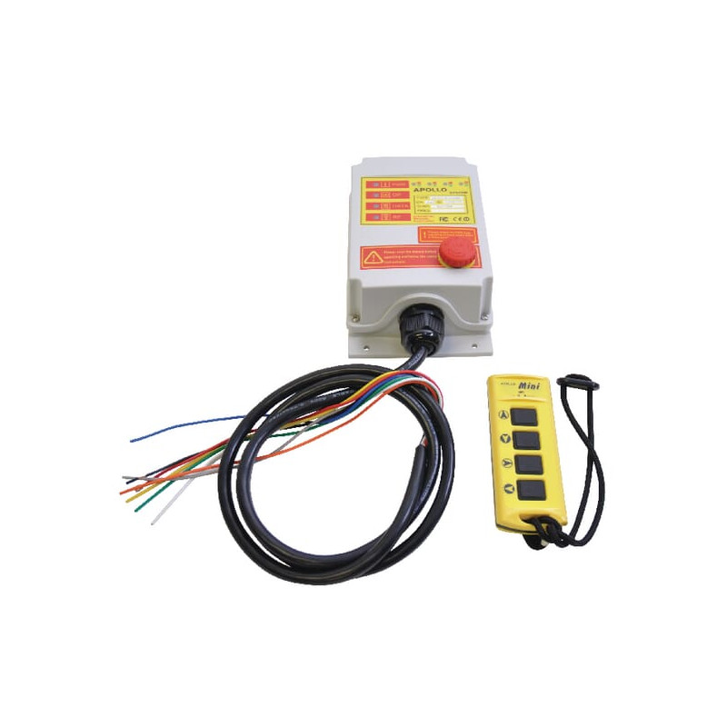 Produkto informacijaBendra informacija: Funkcijų skaičius: 2 arba 4Įtampa: nuo 9 iki 30 V nuolatinės srovėsSiųstuvas:Sandarumo klasė: IP65Standartiškai tiekiamas su įjungimo/išjungimo jungikliu ir nešiojimo dirželiuSiųstuvo veikimo nuotolis:30 m garantuojamas normaliomis sąlygomis (atviroje erdvėje)Baterijos:2x AA šarminės baterijos (1,5 V)Tarnavimo laikas:Apytiksl. 1 metai ar ilgiau, esant įprastam naudojimui Vidinė antena, varža 50 omų Korpusas pagamintas iš ABS ir PC, atsparus vandeniui, smūgiams ir nešvarumams Aplinkos temperatūra: nuo 0 iki 70 °C Svoris: 70 g Matmenys: 124 x 48 x 25 mm Tipai, kurie baigiasi raide „D“, turi du rankinius siųstuvus Imtuvas: Sandarumo klasė: IP65 Standartiškai tiekiamas su avarinio stabdymo jungikliu ir jungiamuoju kabeliu (1,5 m) Vidinė antena, varža 50 omų Aplinkos temperatūra: nuo -10 iki 70 °C Svoris: 670 g Matmenys: 204 x 121 x 65 mm Srovė vienam išėjimui: 5 A Dažnių diapazonas: 418 ~ 433 MHz (20 kanalų) LED ekranai priekyje: Atitinkami išėjimai (raudona ir žalia), maitinimo šaltinis (žalia), veikimas (žalia), duomenys (raudona), dažnis (raudona)