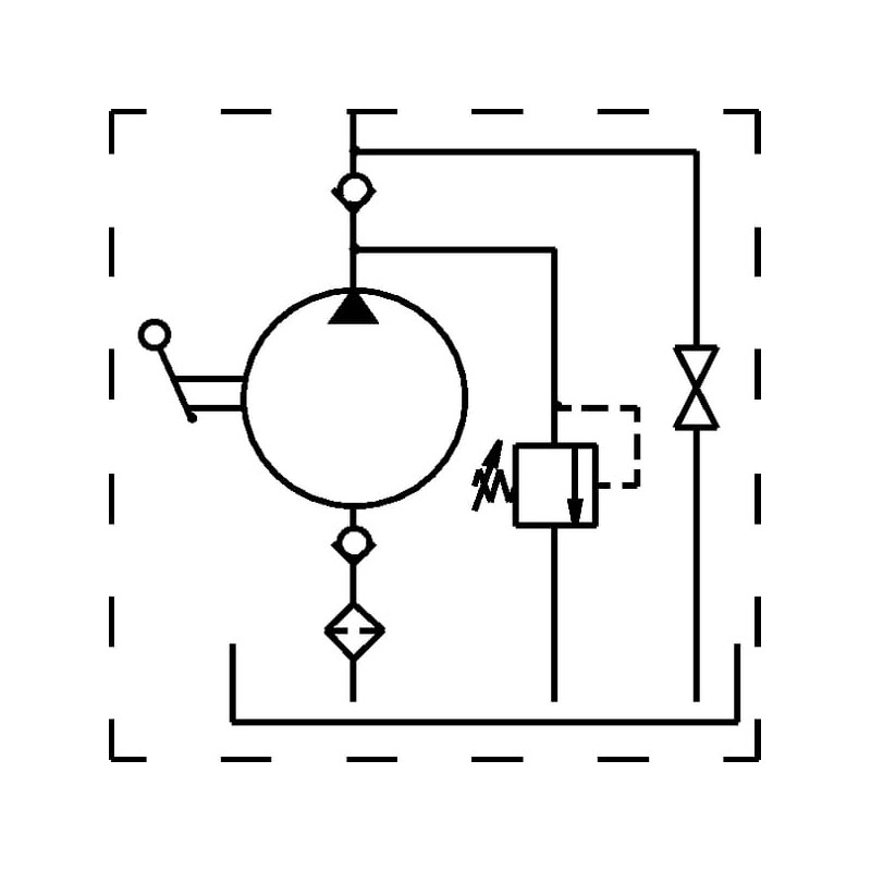 Techninė informacijaKompaktiškas, vieno veikimo rankinis siurblys su įmontuotu slėgio mažinimo vožtuvu, alyvos baku ir uždarymo vožtuvu.