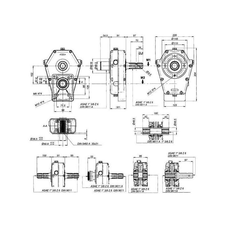 Produkto informacija Įvesties velenas: veleno arba įvorės tipo Įvesties velenas: 1 3/8 colio 6 griovelių Visos pavarų dėžės tiekiamos be alyvos. Pirmasis alyvos keitimas po 50–70 darbo valandų, vėliau po 500–700 darbo valandų arba bent kartą per metus. Dėl galios esant kitokiam aps./min. susisiekite su mumis.