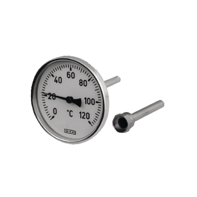 Produkto informacijaBimetalinis termometras su rodykle, panardinimo veleno Ø 9 mm Panardinimo veleno ilgis: 60 mm Apsauginis vamzdis G 1/2 colio nuimamas, užspaudžiamas
