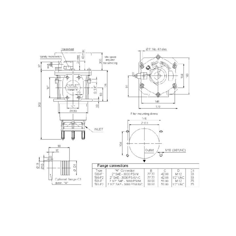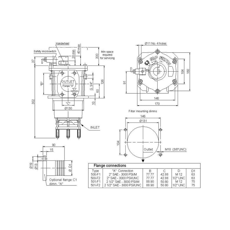 Siurbimo filtras SF2500-A-F1-D-M25 2" SAE SF2500M25