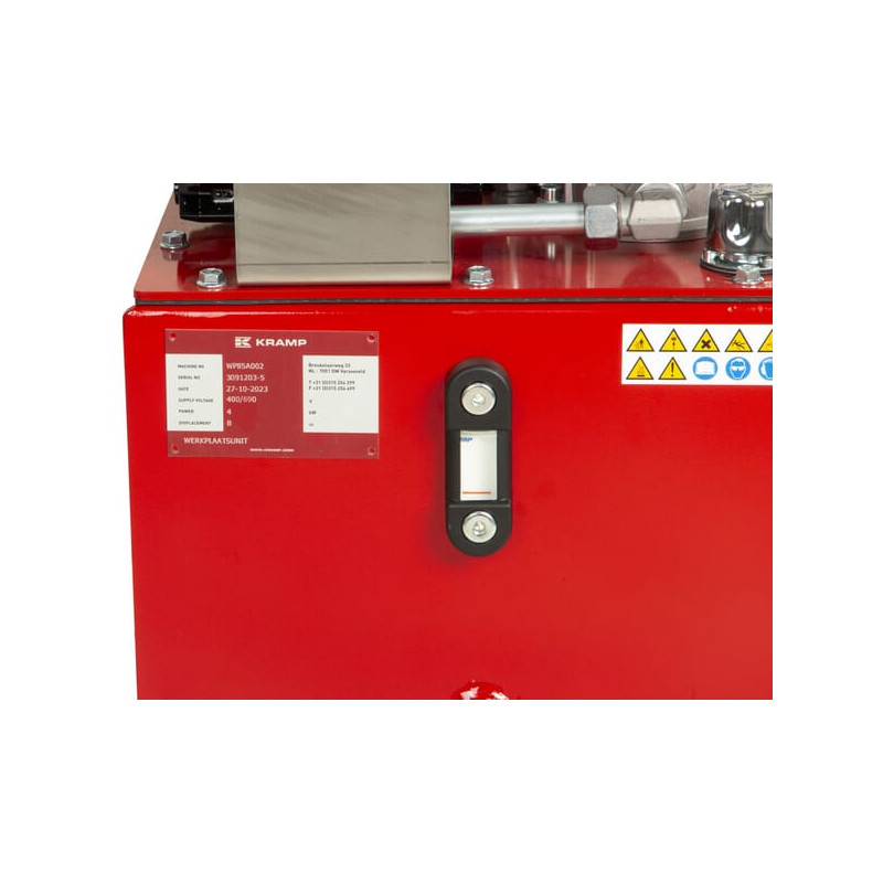 Produkto informacijaAnt ratų montuojamas hidraulinis agregatas, skirtas naudoti dirbtuvėse. Smūgiams atsparus plieninis bakas su lygio indikatoriumi (stebėjimo langeliu). Ypač tvirtas ratų tvirtinimas. Darbinio slėgio rodmens matuoklis (su sklende). Grįžtamasis filtras su apribojimo indikatoriumi (slėgio matuoklis). Didelis užpildymo dangtelis su aeracija ant bako, kad būtų lengva užpildyti. Rankiniai dvigubo veikimo vožtuvai.