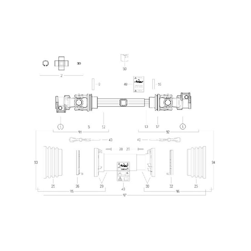 Kardaninis velenas S1 L: 860mm, Bondioli&Pavesi CS1N086CE007007