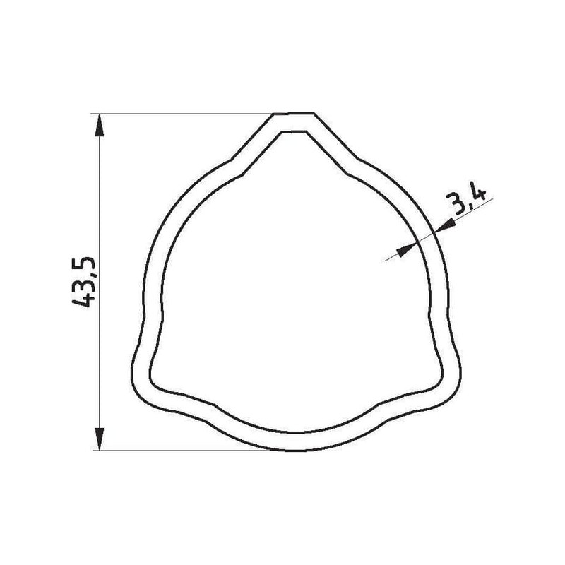 Profilinis vamzdis išorinis trikampis T40 Ø į vidų: 36,7 Ø iš išorės: 43,5x3,4 mm L: 0,865 m Corner 4300152140212