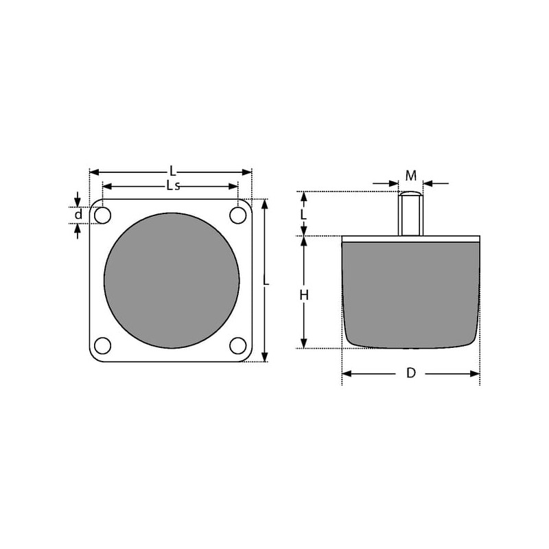Išsamus aprašymasVibracijos slopintuvai KP/D, vienos pusės varžtas