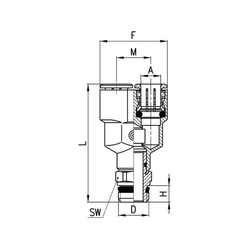 SW1 jungtis, veržliarakčio dydis14,0 mm