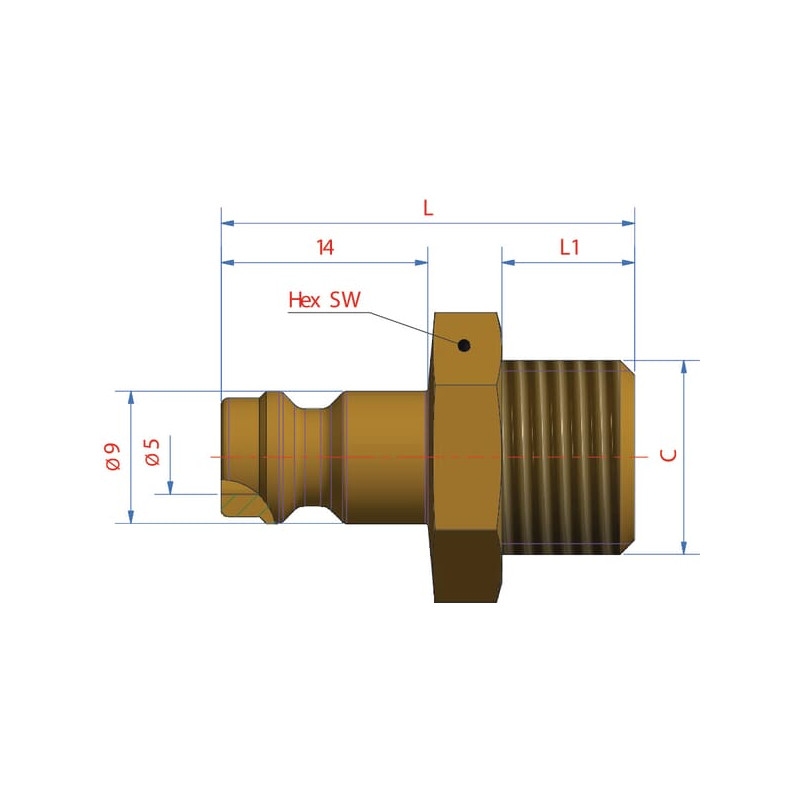 Vyriškas sriegis su 1/8" BSP išoriniu sriegiu ESM18NA