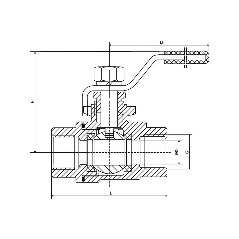 Produkto informacijaDviejų dalių pilno prievado rutulinis vožtuvas - Ilga versija (DIN3202-M3) - Kūginis sriegis pagal ISO 7-1 ir DIN2999-1 - Su fiksavimu - PTFE sandarikliai