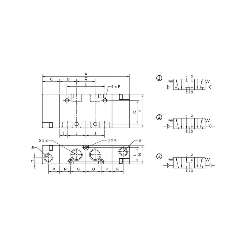 Vožtuvas, 5/3, pneumatinis, 1/8" PV53M18OC