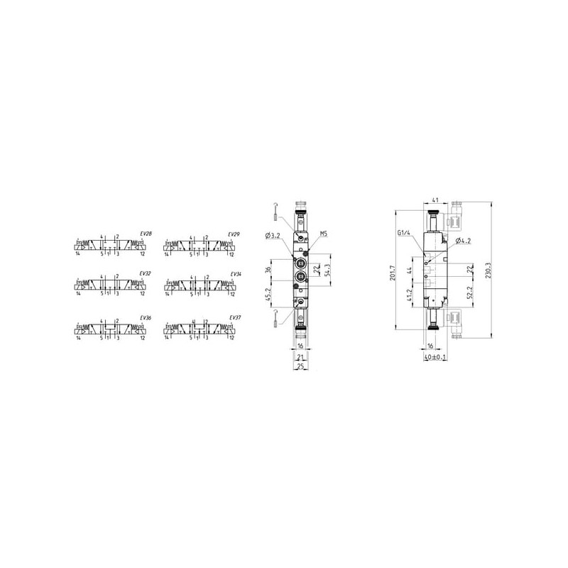 Solenoidinis vožtuvas 5/3 padėčių 36401102