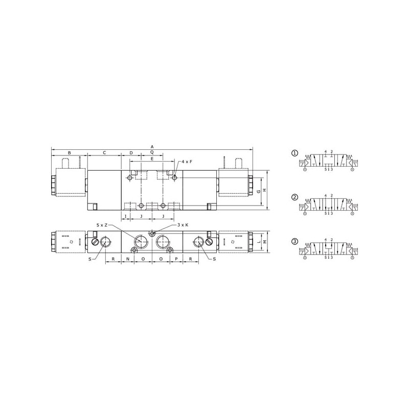 Solenoidinis vožtuvas 1/4"-PC 5/3 padėčių SOV53MS14PC
