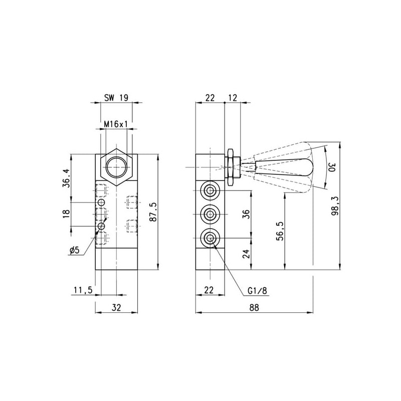 Vožtuvas, 5/3 rankenėlė 378905