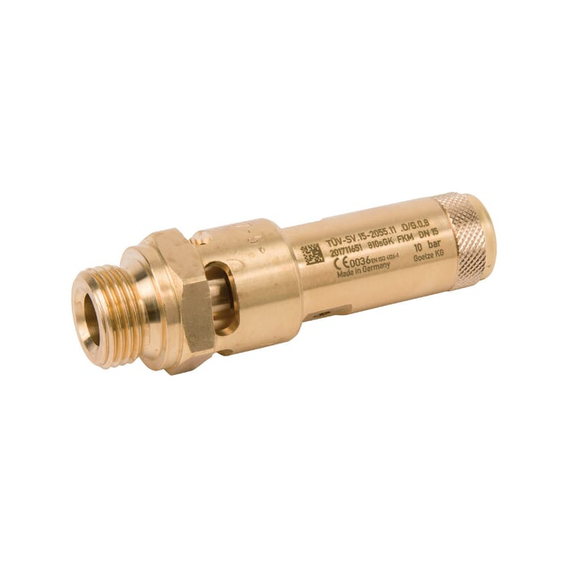 Produkto informacijaApsauginis vožtuvas su fiksuotu nustatymuCE patvirtintas: EN 10204 2.2 (Apsauginius vožtuvus su aukštesniu CE sertifikatu galima užsisakyti specialiai) Pagal pageidavimą galima užsisakyti bet kokį norimą slėgį nuo 0,3 iki 47 barųSuslėgtam orui arba neutralioms dujomsKorpusas: žalvarisVidinė dalis: žalvarisSuspaudimo spyruoklė: nerūdijantis plienasSandarikliai: mažiau nei 2,4 baro: silikonasSandarikliai: nuo 2,4 baro: fluoro gumaTemperatūros diapazonas: nuo -10 °C iki +180 °C