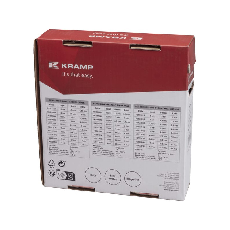 Išsamus aprašymasVienasienės termosusitraukiančios movos yra lanksčios, atsparios ugniai, pagamintos iš poliolefino. Termosusitraukiančios movos išskiria mažai dūmų, yra atsparios dilimui ir degimo atveju neturi dioksinų. Be to, termosusitraukiančios movos pasižymi puikiomis elektrinėmis ir fizinėmis savybėmis, įskaitant puikų atsparumą rūgštims ir korozijai.