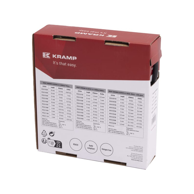 Produkto informacijaMedžiaga: Poliolefinas su klijų sluoksniu Susitraukimo santykis: 3:1 Darbinė temperatūra: -55 ~ 125 °C Minimali susitraukimo temperatūra: 100 °C