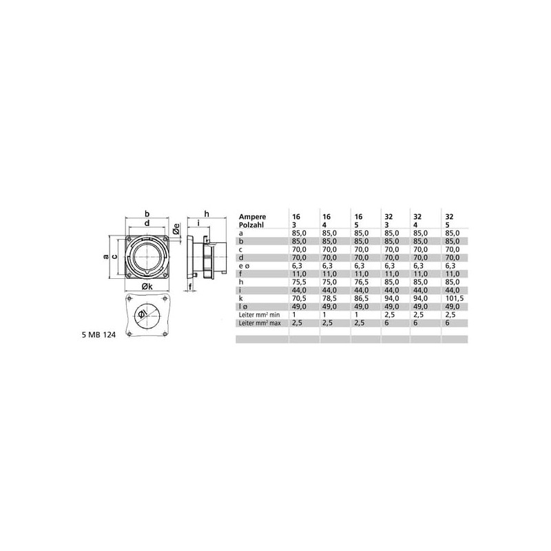 Mašinos kištukas su flanšu, 32A 5P 400V IP67 B0028109