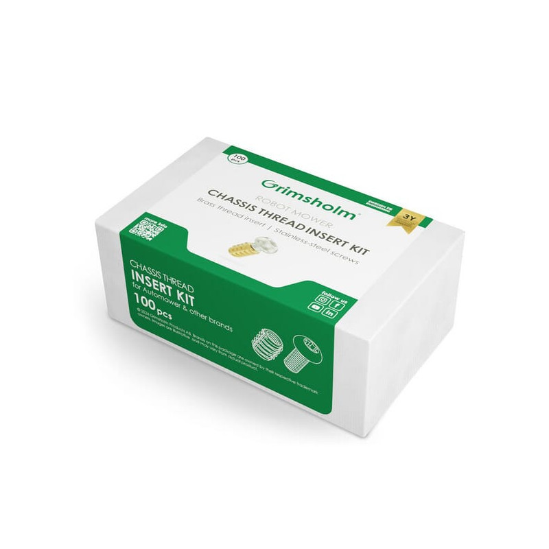Išsamus aprašymas„Grimsholm“ pažeistų važiuoklės sriegių remonto rinkinys suderinamas tiek su „Husqvarna Automower“, tiek su daugelio kitų prekių ženklų robotinėmis vejapjovėmis.