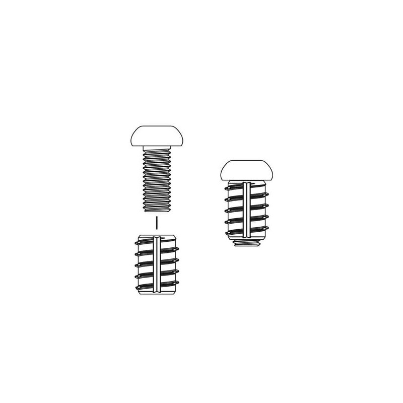 Produkto informacijaSu šiuo sriegio įdėklu galite lengvai pataisyti pažeistus sriegius naujais metaliniais sriegiais, kurie įsukami tiesiai į plastikinį važiuoklę Kai kuriuose modeliuose ir situacijose prieš montuojant gali tekti išgręžti skylę važiuoklėje; tai daroma 6,5 mm grąžtu (nepridedama). Sriegio įdėklai pagaminti iš žalvario, o varžtai – iš nerūdijančio plieno (A4 kokybės).
