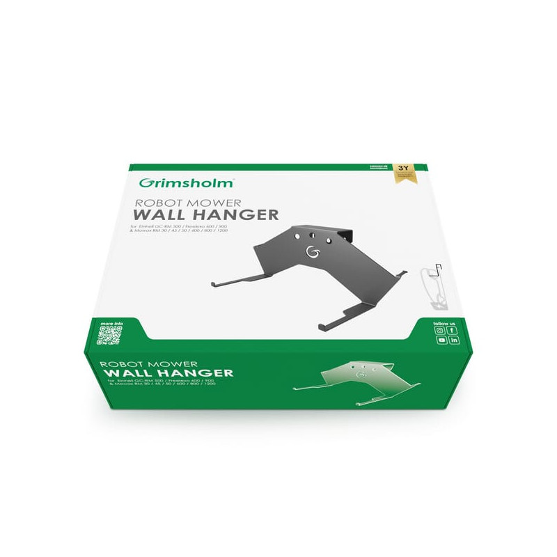 Išsamus aprašymasSu „Grimsholm“ sieniniu laikikliu jūsų robotas vejapjovė yra įkraunamas priežiūrai, kol jis laikomas žiemai, ir jūs sutaupote vertingos grindų vietos garaže.