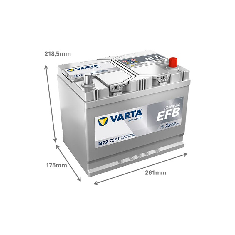 Akumuliatorius 12V 72Ah 760A N72 VARTA Dynamic EFB 572501076