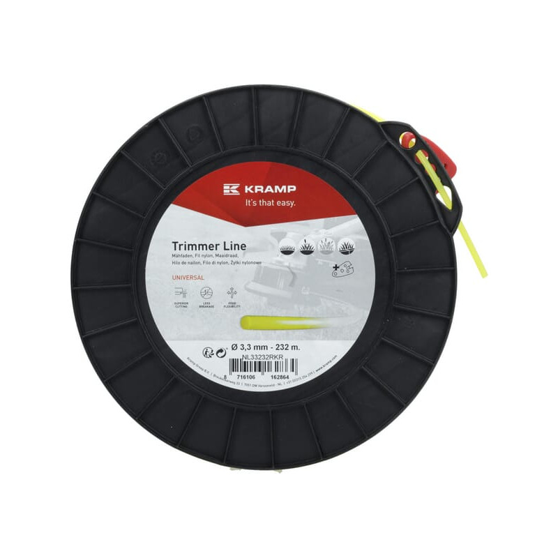 Žoliapjovės valas Ø 3,3 mm, 232 m, apvalus, geltonas, Kramp NL33232RKR